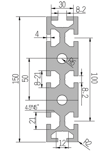 適用于應(yīng)力及強度較大的框架組合結(jié)構(gòu),它的外型采用圓角過渡,表面經(jīng)過陽極氧化處理,高雅美觀并抗腐蝕,它通常采用M8X20高強度專用螺栓加彈性扣件的內(nèi)部連接方式,堅固而又可靠,是工業(yè)框架應(yīng)用最廣泛的型材之一。